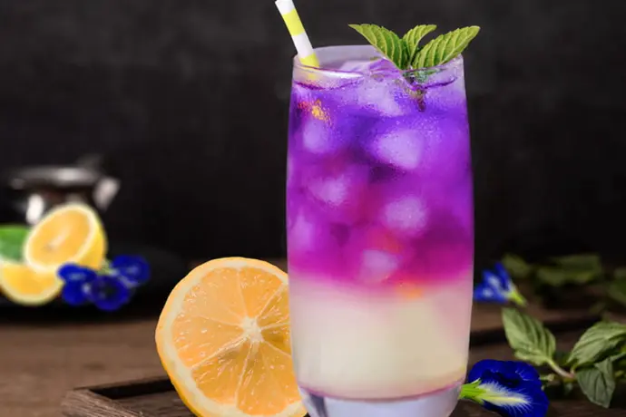 A dreamy blend of blueberry, citrus, and a touch of sparkle. With deep violet tones and cosmic swirls, this refreshing drink tastes as magical as it looks.